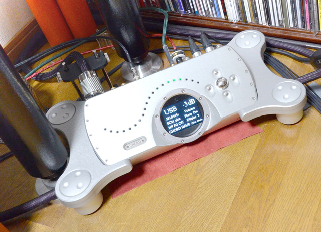 電源コネクターをフルテックのNCF Booster-Signalで支持した(写真左奥)、コードのDAコンバーター、DAVE