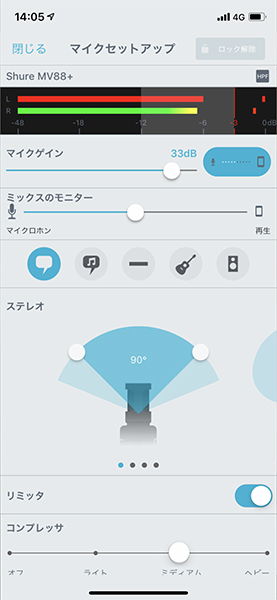 マイクの指向特性やステレオ幅調整の調節なども引き続き設定可能だ