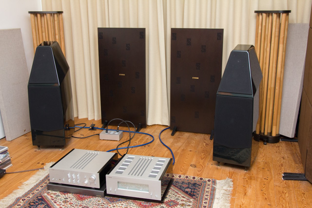 筆者試聴室の風景。常設機材に加え、フォノイコライザーアンプとしてラックスマン「EQ-500」を組み合わせた