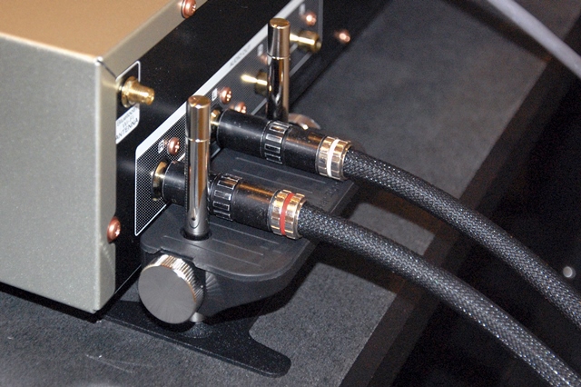 マランツのネットワークCDプレーヤーND8006の、アナログ出力端子部へNCF Booster-Signal-Lを挿入。ここは位置が低くて従来のNCF Booster-Signalは使えなかった場所だ