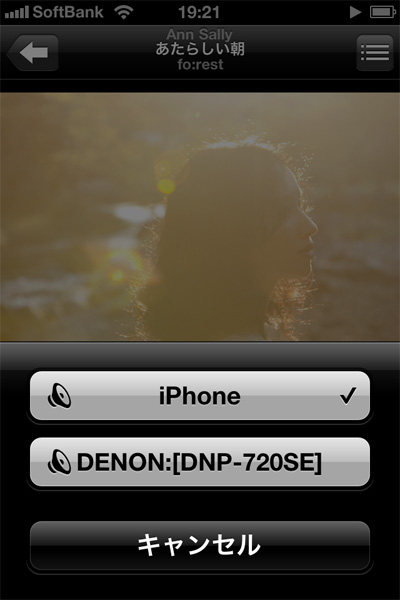 iPhoneからAirPlay再生機器に「DNP-720SE」を選択