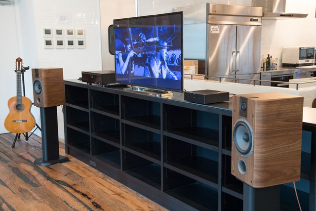 ホームシアターシステムが構築。Sonos Ampを用いて、Focalのスピーカー「Chorus 706」を接続。リアスピーカーにはSonos OneがWi-Fiで接続された
