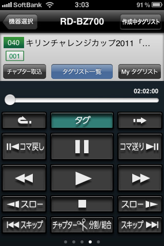 番組の再生中に「タグリスト一覧」ボタンをタップ