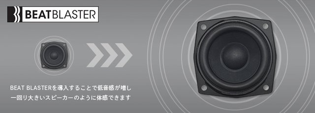 「BEAT BLASTER」は最適な音響バランスの倍音を付加することで、音質を損なうことなく 低域を増強するというパイオニアの独自機能
