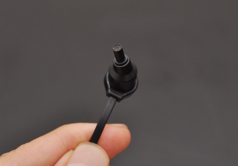 ノズルをやや傾けて耳に挿入しやすく設計した
