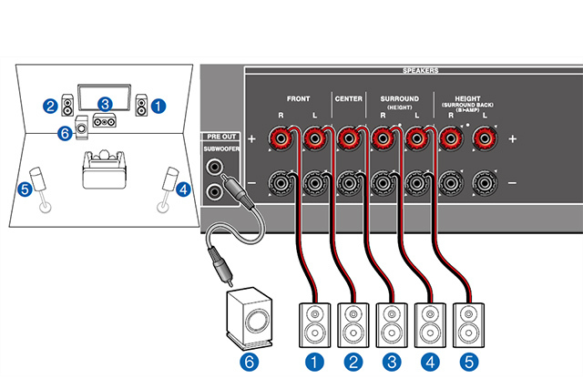 7ch分のパワーアンプとサブウーファープリアウトで、最大7.1chもしくは5.1.2chのサラウンド環境が構築できる(画像は本製品の説明書より引用)