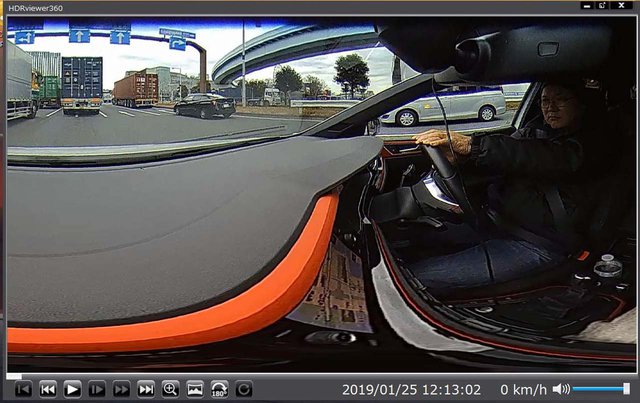360度で撮影できるドラレコは、前方だけでなく左右方向の撮影もでき、側突などの状況までサポートする。写真はコムテック「HDR360G」で撮影