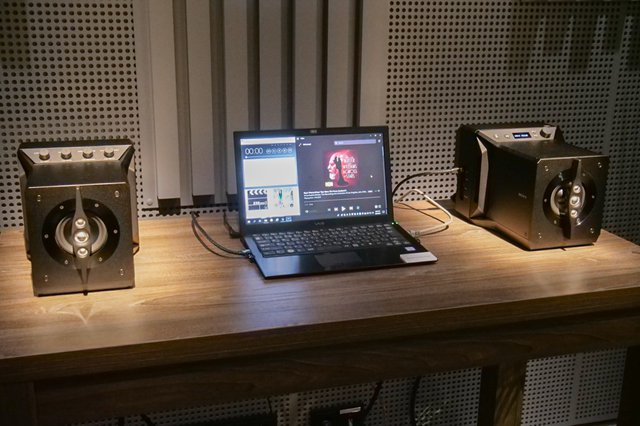 デスクトップにSA-Z1と音源再生用のパソコンを載せてデモンストレーションを行った