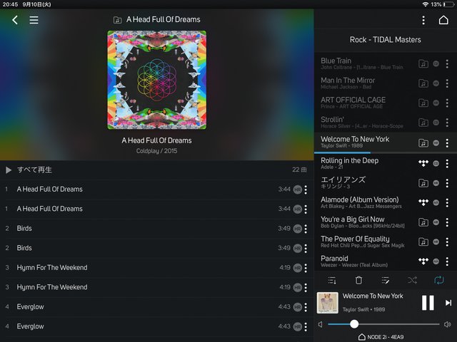 キュー再生のリストにローカルファイルとTIDAL等を混ぜ込んで再生可能だ
