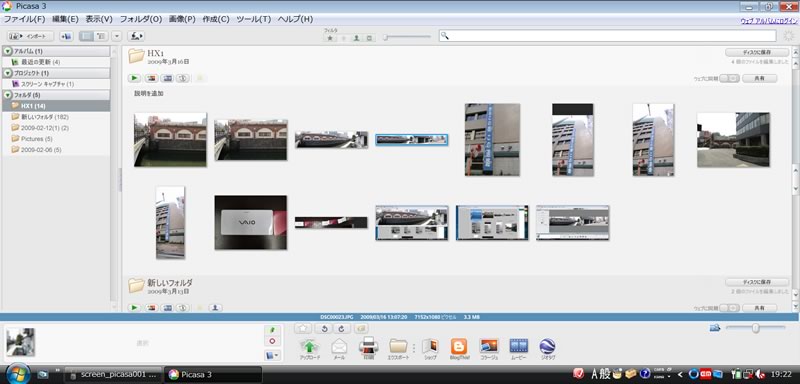Picasa 3で画像を一覧表示したところ