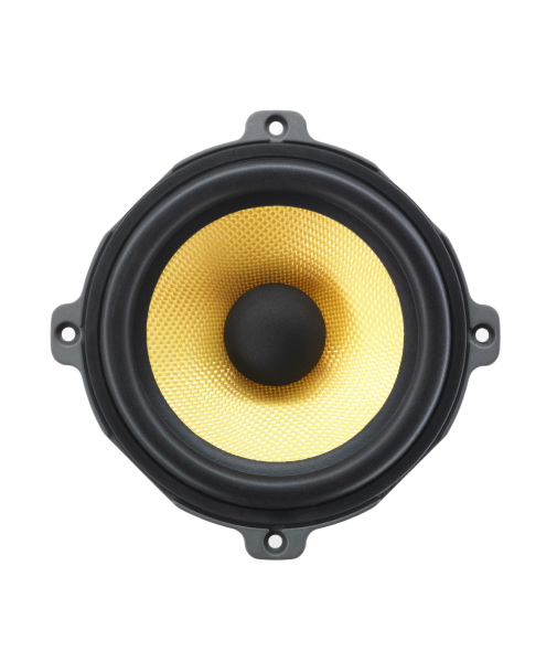 ミドル/バスユニットは「ウォーブンケブラーコーン」を採用。EVAのセンターキャップをボイスコイルに直付けして分割共振を抑えた