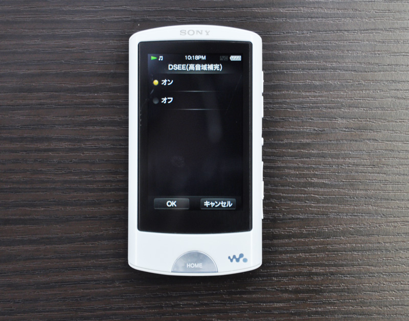 「DSEE(Digital Sound Enhancement Engine)」のオン/オフ設定画面。本体設定メニューの「音楽設定」からアクセスできる