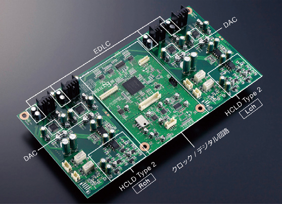 N-05のDAC基板。このDAC部への電源供給にもスーパーキャパシターを採用している