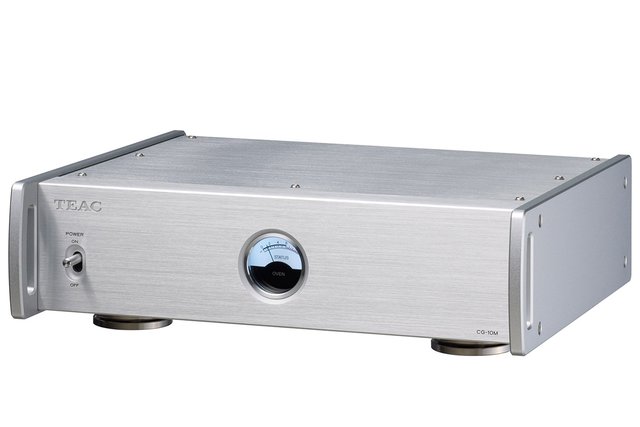 ティアックの10MHz高精度クロックジェネレーター、CG-10M(価格は¥OPEN、市場実売価格¥148,000前後)。「リーズナブルな価格で解像度と空間再現性を一気に高める」と角田氏も絶賛する