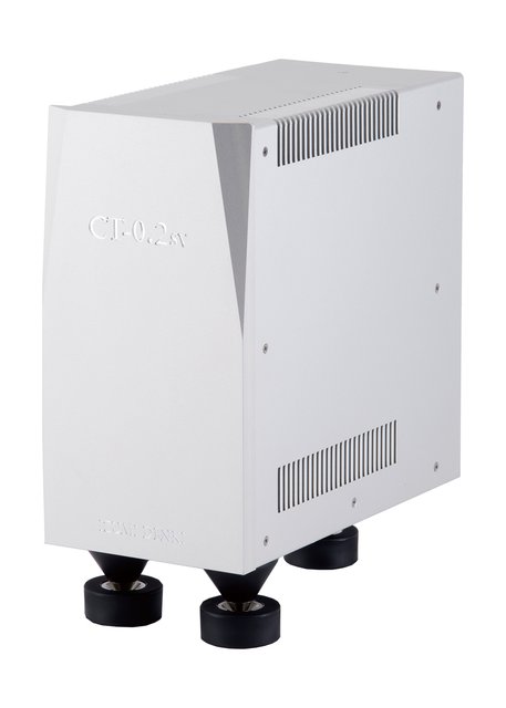 フロントパネルは10mm厚のアルミ材で、モデルとブランド名には特別仕様として彫刻仕上げを採用 。弟モデルとして、リーズナブル価格モデルの「CT-0.2U」(2A、¥98,000)や、大容量の特注機「CT-1.5」(15A、¥270,000)、「CT-3.0」(30A、¥350,000)も用意されている(各税別)。また、200V仕様機も特注対応にて製作