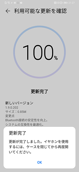 アップデートもアプリ経由で行える
