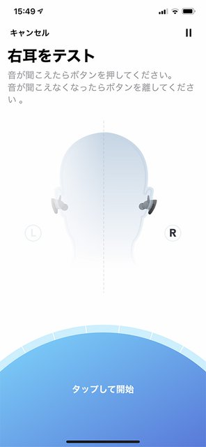 「HearID」機能アプリ画面。左右両耳の「Hearing Profile」を確認する。テストの所要時間は3分程度