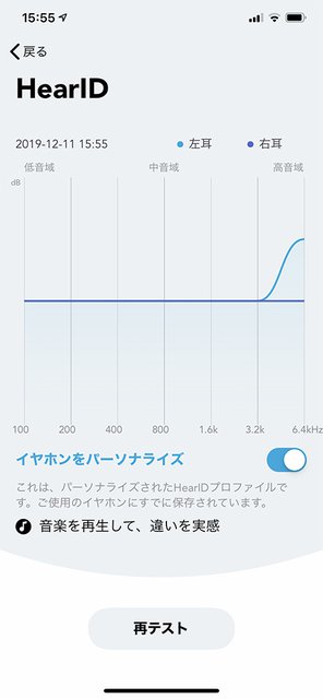 測定結果は画面のように表示され、それに合わせて再生音を最適化してくれる