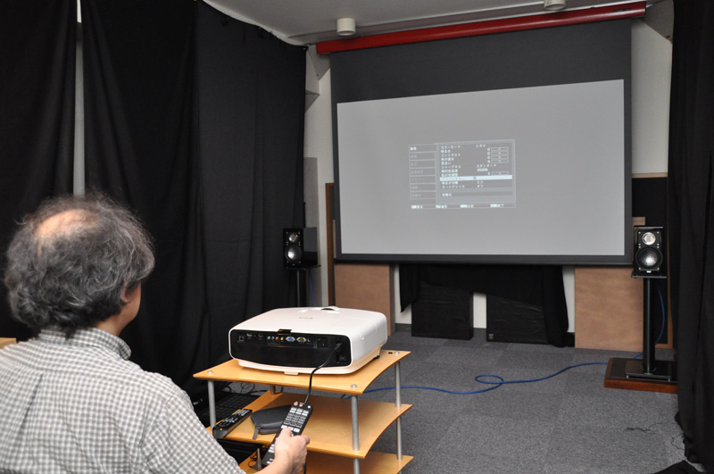 音元出版視聴室にて、EH-TW8000Wを視聴する山之内氏