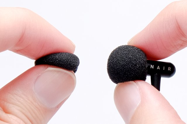 ソフトスポンジ素材のインエアーキャップのつけ心地はフワフワ。耳に負担がまったくかからない