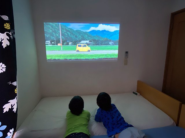夜でなくても、カーテンを閉めれば鮮明な映像が楽しめた