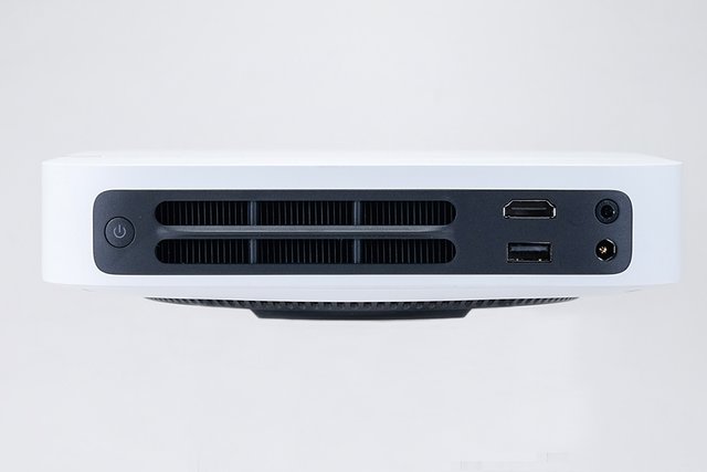 本体背面に端子部を備える。HDMIやUSB-A入力を備えるため、BDプレーヤーなどと組み合わせることも可能