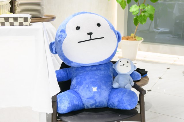 入り口ではひかりTVのキャラクター「ひかりカエサル」のぬいぐるみがお出迎え