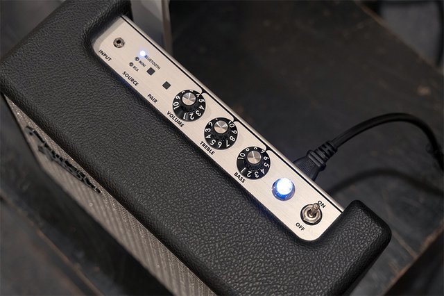 「TREBLE=高音」「BASS=低音」の調整ノブも装備