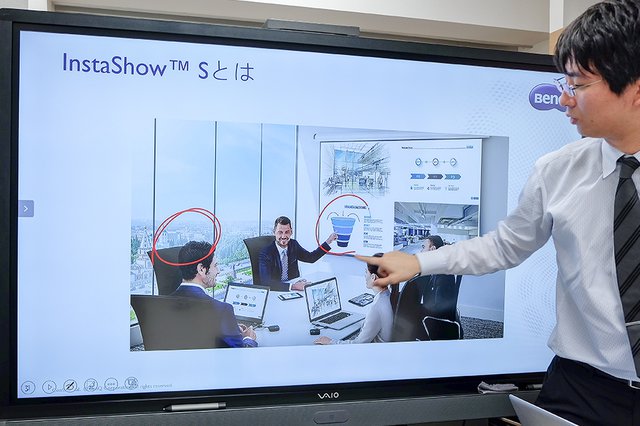 タッチバック機能により、ディスプレイを直接タッチして資料のスライド送りや書き込みが行える