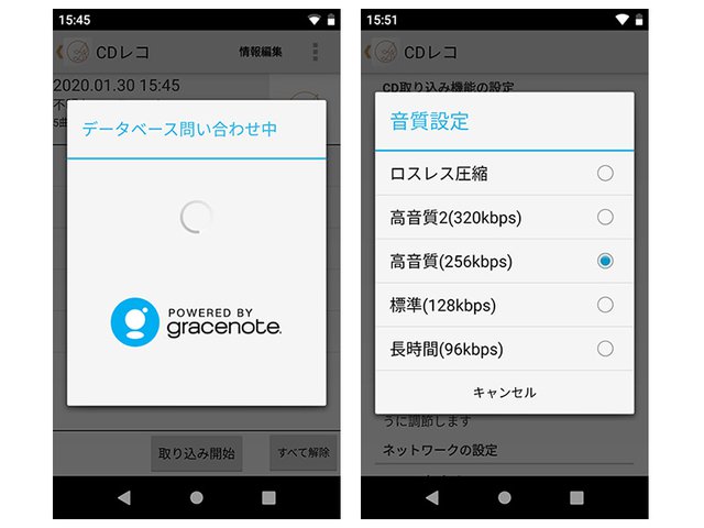 Gracenoteから楽曲名やアーティスト名を自動で連係。リッピングの際は保存音質も選択できる