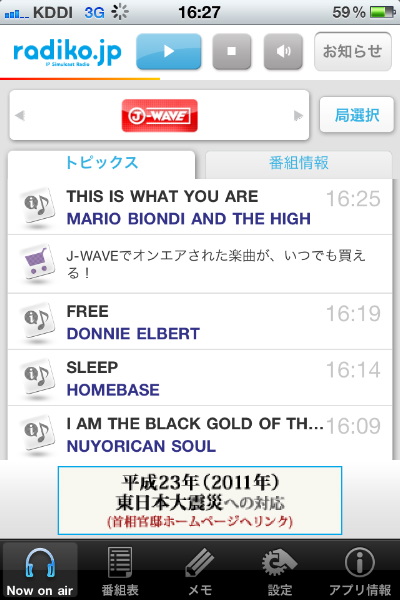『radiko.jp』を3G回線で聴いているとき着信があると、au版ではストリーミングが中断されてしまう