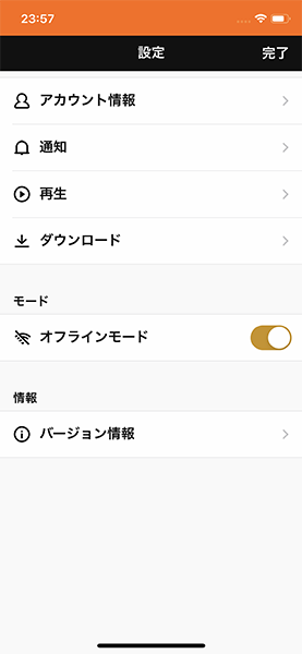 「オフラインモード」利用時は、画面上に赤い帯が表示される