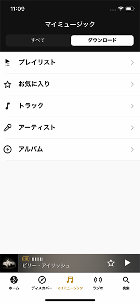 ダウンロードした音源は「マイ ミュージック」内にまとめて表示される