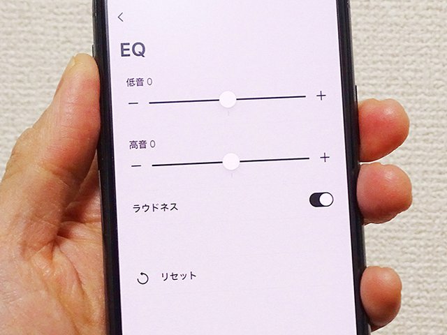 イコライザーで高域・低域、ラウドネスの調整が可能