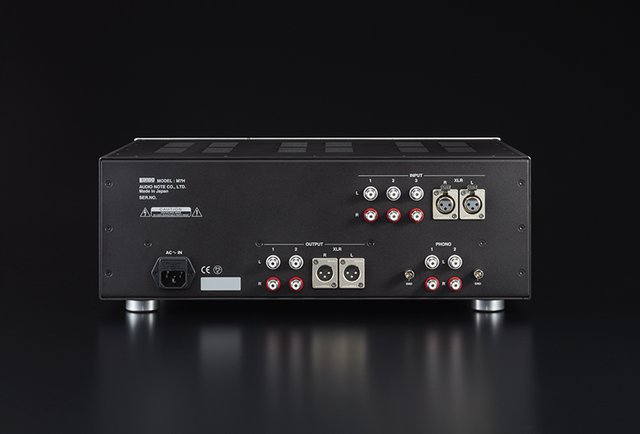 本機のリア部。入力端子はRCA×3系統とXLR×1系統のほか、MM専用のフォノ入力(RCA)を2系統装備。出力端子はRCA×2系統とXLR×1系統を搭載