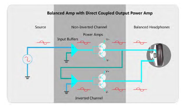 バランス駆動の仕組み。左右それぞれのチャンネルで、正相と逆相(Inverted)が別々のアンプによって駆動されている