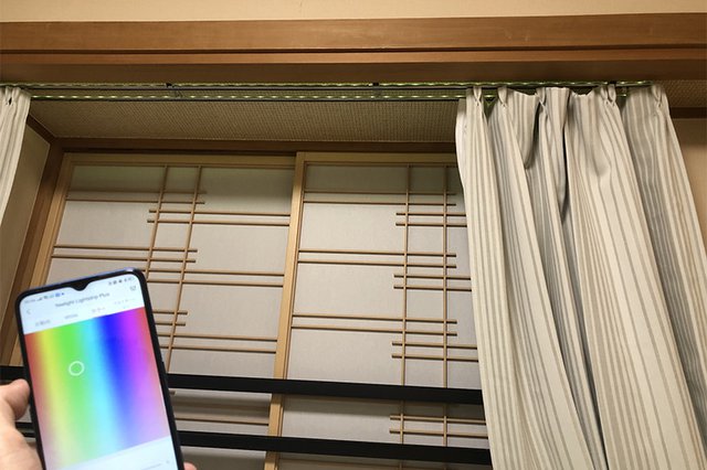 カーテンを開けるとこんな感じ。アプリで色を変えられるのが楽しい