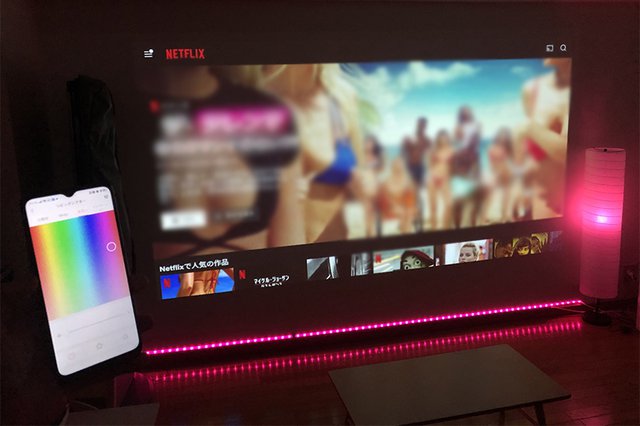 プロジェクターでNetflixの映像を投影したところ。アゲアゲ感がある(笑)