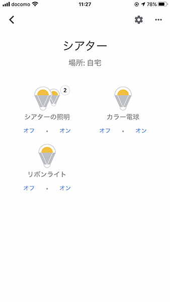 Google HomeアプリでYeelightを「シアター」としてグループ化したところ