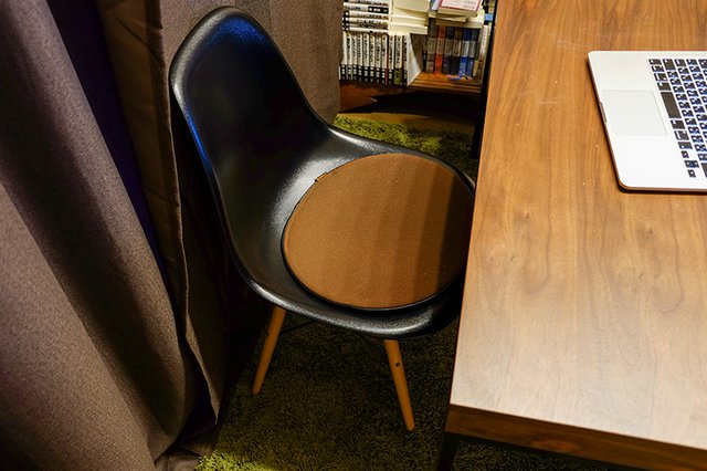 普段使っているのはジェネリックのイームズチェア。スペースはギリギリ