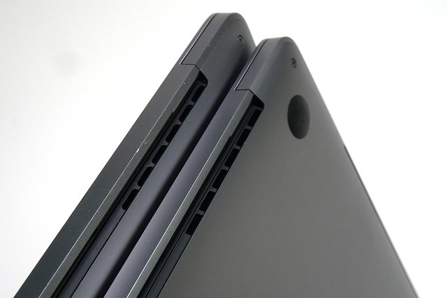 右の新モデルと左の2018年モデルを比べると、排熱孔のかたちが変わっていることに気づく