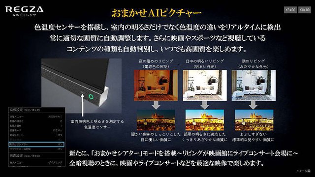 部屋の明るさや照明の色温度などを検知して最適な画質に調整する「おまかせAIピクチャー」モードを選択するとクラウドAI高画質テクノロジーも自動的にオンになる
