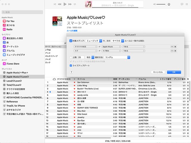 例えばこのスマートプレイリストも「クラウドの状況」が「Apple Music」な曲を集める条件にしてある