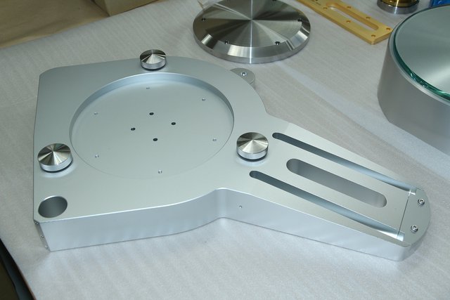 メインシャーシの裏面。水平が取りやすいように3点スパイクの大径ネジ方式とした脚部
