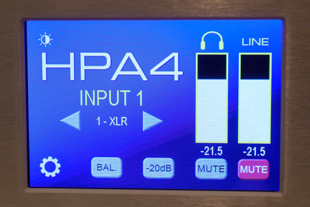 HPA4前面のディスプレイはタッチ操作に対応。入力の切り替えやミュート、左右バランスの調整など細かい操作が行える