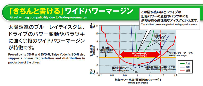 余裕のあるワイドパワーマージンによって記録書き込み時の高い基本性能を誇る