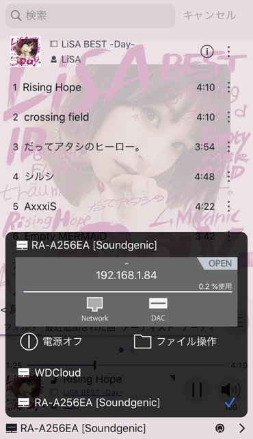 左下の「サーバーを選択」をタップすると、同一Wi-Fi上にあるサーバーが登場するので、「Soundgenic」をタップ