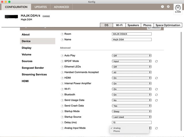 アナログ入力のライン/フォノの切り替えはPCのkonfigから行う