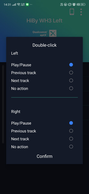 HiBy BlueではWH3のバッテリー/通信状態の確認や、タッチ操作のカスタマイズなども行える