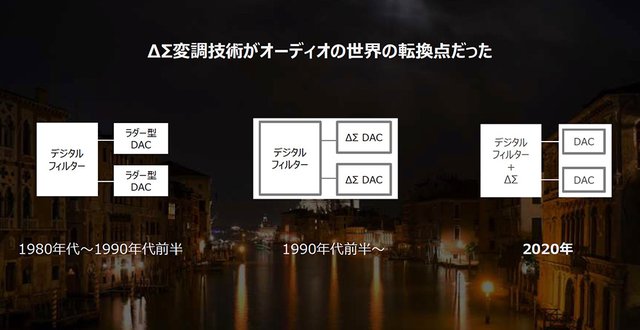 1980年代からの、主なオーディオ用DAC構成の変遷